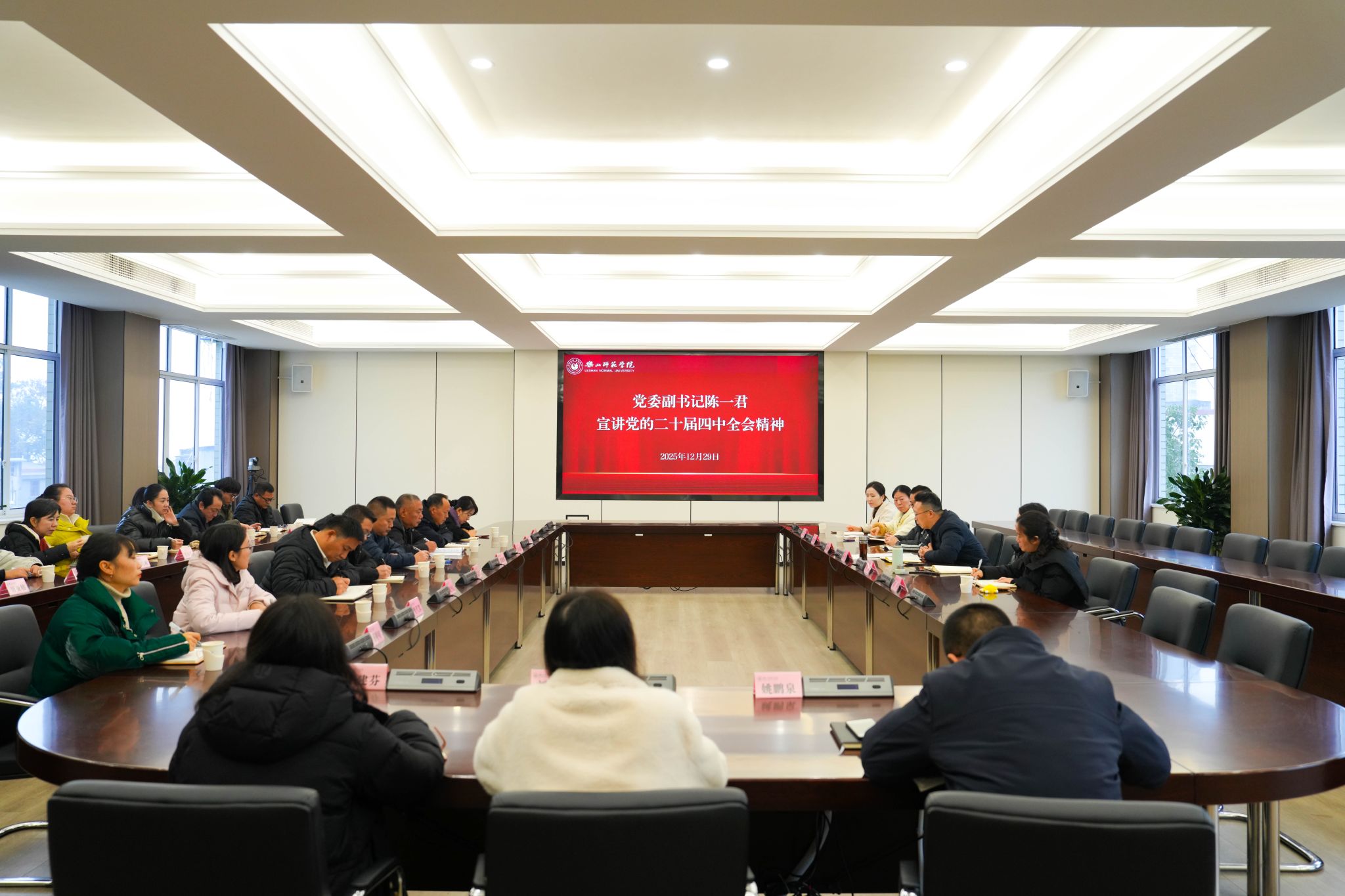 本网讯(文图/融媒体中心)12月29日,学校在弘毅楼第一会议室召开党的二十届四中全会精神宣讲会。党委副书记陈一君面向党委组织部、党委宣传部、国际交流合作处等职能部门全体成员作专题辅导报告。会上,陈一君紧扣党的二十届四中全会主题,系统阐释了其核心要义和精神实质。他强调,深入学习领会党...